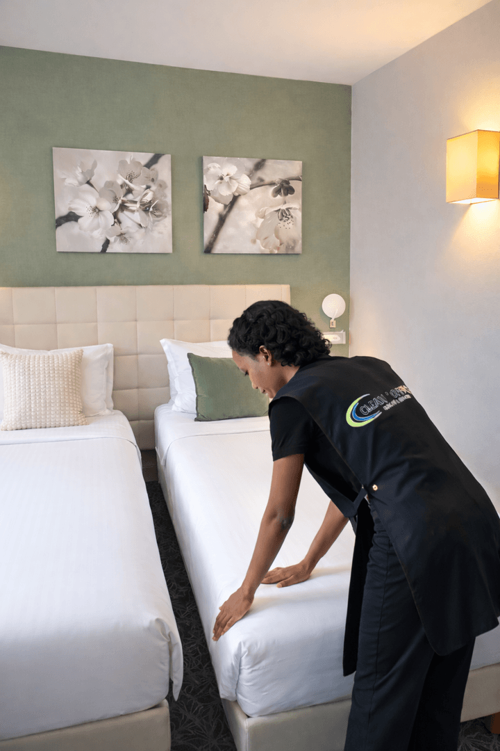Nous garantissons votre nettoyage hôtelier complet : chambres , remise à blanc , parties communes et plonge en restauration.